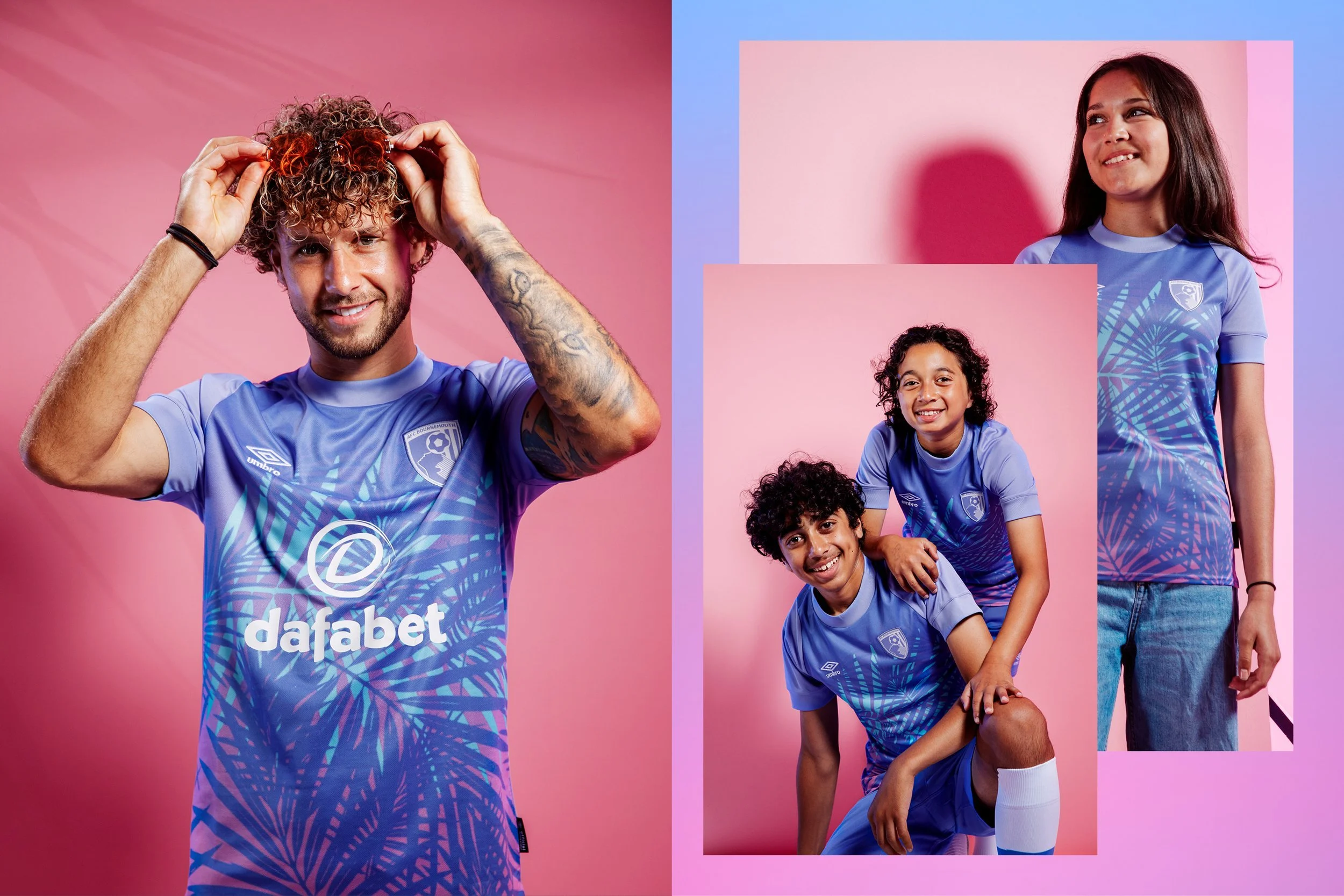 When AFC Bournemouth got in touch to shoot their 2022/23 Away Kit at our studio in Bournemouth and asked us to collaborate not only with lighting design but work together on ideas for the set, along with gaffa for their production team, we were properly excited.